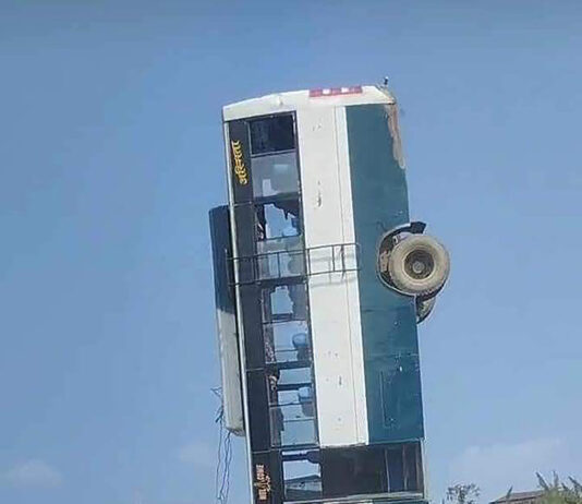 पोखराको लेखनाथमा बस दुर्घटना, सडकमा उभियो बस