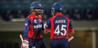 टी–२० विश्वकप ः दीपेन्द्र ऐरी आउट, नेपाललाई जित्न ३० बलमा ६०...