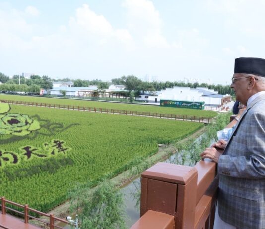 चीन भ्रमणमा रहेको प्रधानमन्त्रीद्वारा धान उत्पादन विशेष क्षेत्रको अवलोकन