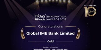 ग्लोबल आईएमई बैंक इन्फोसिस फिनाकल इनोभेसन गोल्ड अवार्डबाट सम्मानित