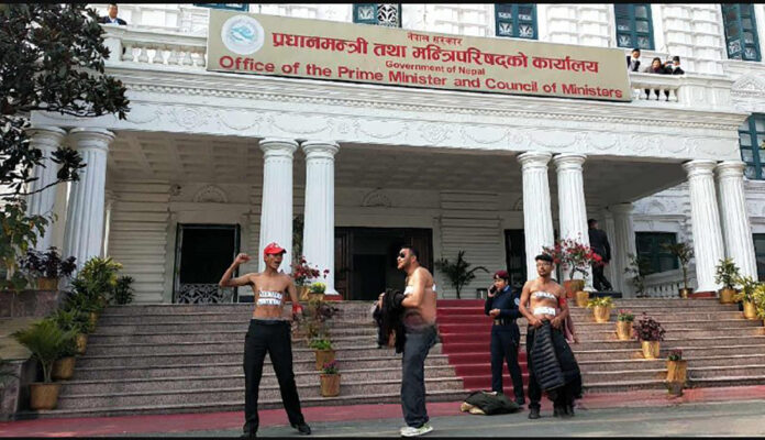 प्रधानमन्त्री कार्यालय अगाडि अर्धनग्न भएर प्रदर्शन