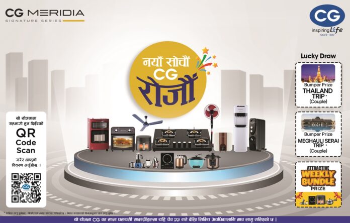 काठमाडौं । इलेक्ट्रोनिक्स् ब्राण्ड सीजीले नयाँ वर्ष २०८१ को उपलक्ष्यमा ‘नयाँ सोचौँ, नयाँ रोजौँ’ योजना सार्वजनिक गरेको छ । कम्पनीले ग्राहकलाई ‘नयाँ गरौँ, नयाँ सोचौँ, र नयाँ नै रोजौँ’ भन्ने मूल सन्देशसहित उपहार योजना लिएर आएको हो ।