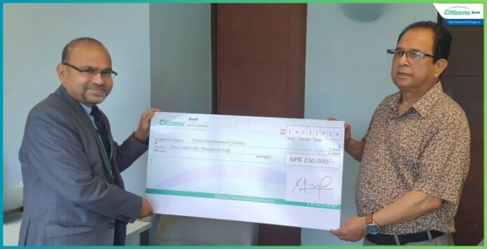 सिटिजन्स बैंकद्वारा बाल विकास समाजका विद्यार्थीलाई छात्रवृत्ति प्रदान