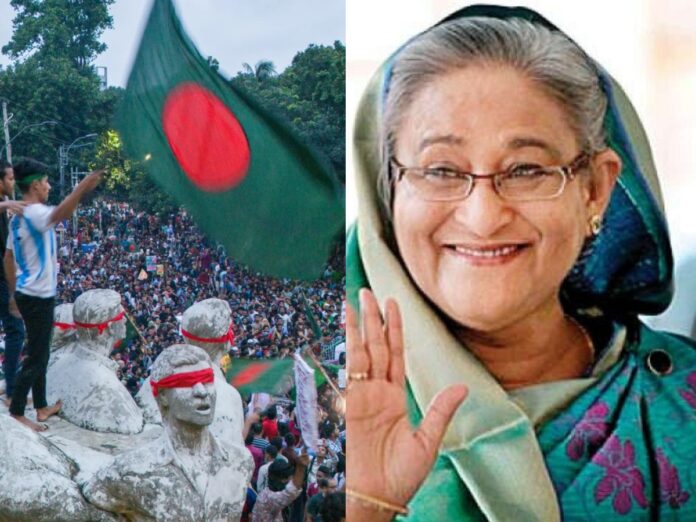 राजधानी ढाकामा हजारौँ प्रदर्शनकारीहरू प्रधानमन्त्रीको सरकारी निवासमा प्रवेश गरेका छन्। बीबीसी बाङ्ग्ला र अन्य सञ्चारमाध्यमले प्रधानमन्त्री हसिना आफ्नी बहिनीसँगै हेलिकप्टर चढेर छिमेकी देश भारतको त्रिपुरा राज्यस्थित अगरतलातिर गएकी जनाएका थिए।