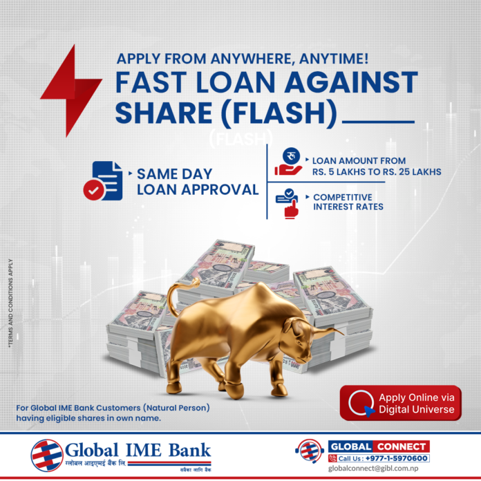 ग्लोबल आइएमई बैंकको अनलाइन प्लेटफर्ममार्फत सेयर धितो कर्जा लिन मिल्ने