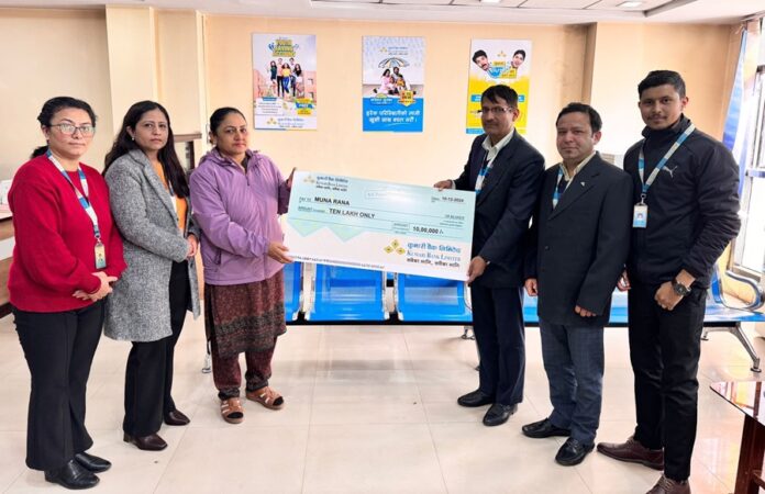 कुमारी बैंकद्वारा १० लाख रुपियाँको बीमा रकम भुक्तानी