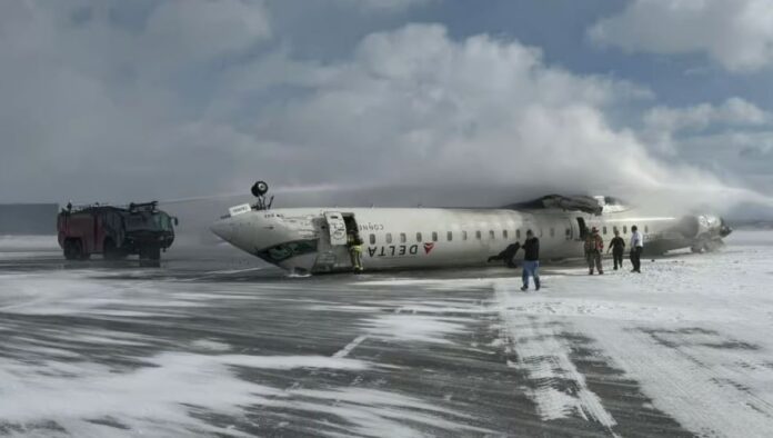 काठमाडौं । क्यानडाको टोरन्टो विमानस्थलमा एउटा विमान पल्टिएको छ । डेल्टा एयरलाइन्सको विमान अवतरणको क्रममा चिप्लिएर दुर्घटनामा भएको हो ।