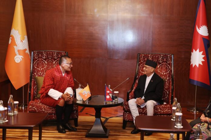 प्रधानमन्त्री ओली र भुटानी प्रधानमन्त्री तोब्गेबीच भेटवार्ता