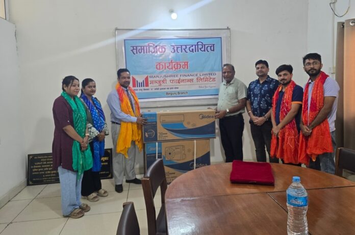 काठमाडौं । मन्जुश्री फाईनान्स लिमिटेडले आफ्नो वीरगंज शाखा मार्फत आरएम केडिया आँखा अस्पताल, वीरगंजलाई दुई थान एसी हस्तान्तरण गरेको छ ।