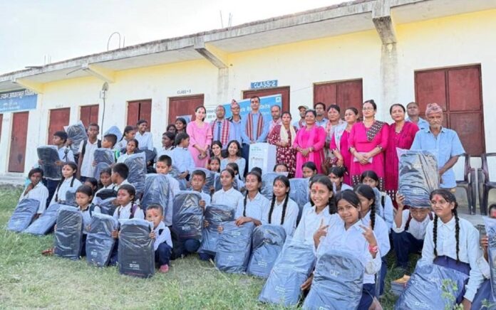 एनएमबि बैंकद्वारा विद्यालयमा स्कुल ब्याग हस्तान्तरण