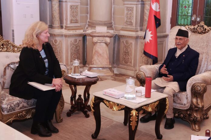 काठमाडौं । प्रधानमन्त्री केपी शर्मा ओली र नेपालका लागि फ्रान्सका राजदूत भर्जिनिइ कर्टेभललेबीच आज शिष्टाचार भेटबार्ता भएको छ ।