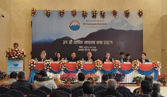 काठमाडौं । हिमालयन एभरेष्ट इन्स्योरेन्स कम्पनी लिमिटेडको ३१औं वार्षिक साधारण सभा सफलतापूर्वक सम्पन्न भएको छ ।