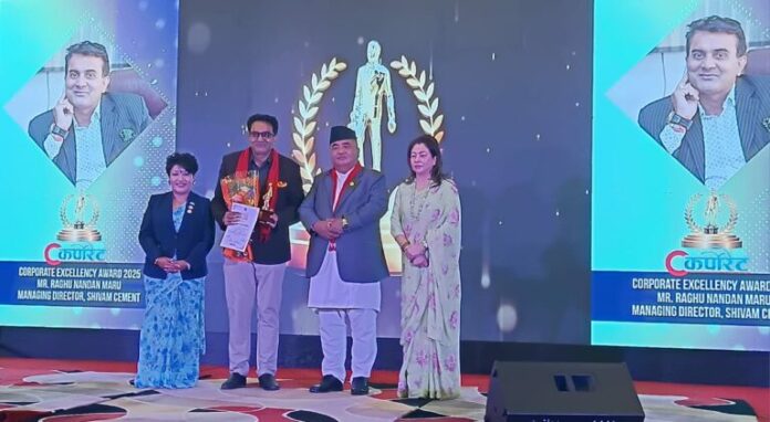 कर्पोरेट खबरद्वारा आयोजित इश्वरलाल १७ औं कर्पोरेट बिजनेश अवार्ड २०२५ कार्यक्रममा शिवम् सिमेन्ट्सका प्रबन्ध निर्देशक रघुनन्दन मारुलाई उक्त अवार्ड प्रदान गरिएको छ ।