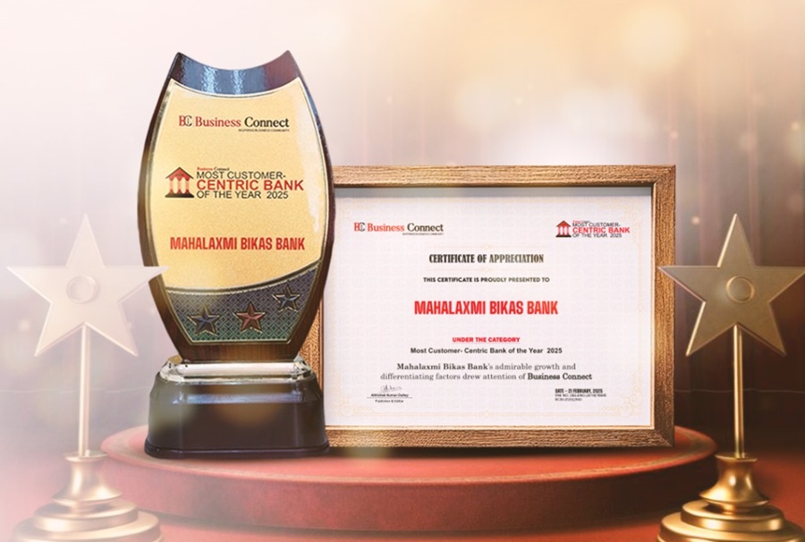 काठमाडौं । ग्राहकहरुलाई अत्याधुनिक, सुरक्षित तथा सहज डिजिटल बैंकिङ्ग सुविधा उपलब्ध गराइरहेको महालक्ष्मी विकास बैंक भारतको प्रतिष्ठित म्यागजिन ‘विजनेश कनेक्ट’ द्वारा ग्राहक केद्रित बैंकको अन्तराष्ट्रिय अवार्डबाट सम्मानित भएको छ ।