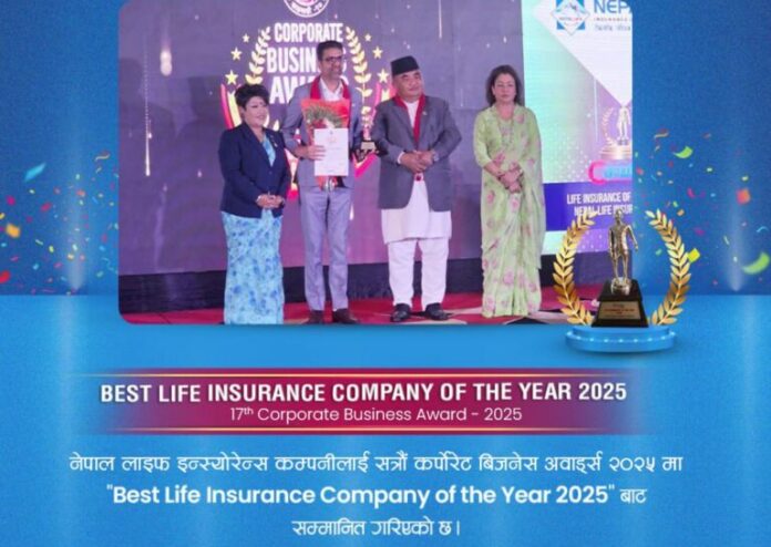 काठमाडौं । नेपाल लाइफ इन्स्योरेन्स कम्पनी बेष्ट लाइफ इन्स्योरेन्स कम्पनी अफ दि इयर २०२५ अवार्ड बाट सम्मानित भएको छ ।