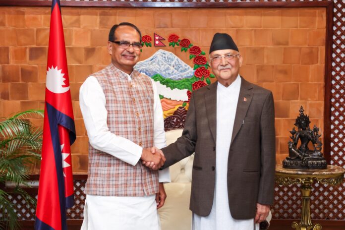 काठमाण्डौं । प्रधानमन्त्री केपी शर्मा ओलीसँग नेपाल भ्रमणमा रहेका भारतका कृषि तथा किसान कल्याणमन्त्री शिवराज सिंह चौहानले आज शिष्टाचार भेट गरेका छन् ।