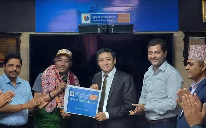 काठमाडौं । लुम्बिनी विकास बैंकले किर्तिमानी पर्वतारोही कामी रिता शेर्पालाई बैंकको लोगो अंकित ब्यानर हस्तान्तरण गरेको छ ।