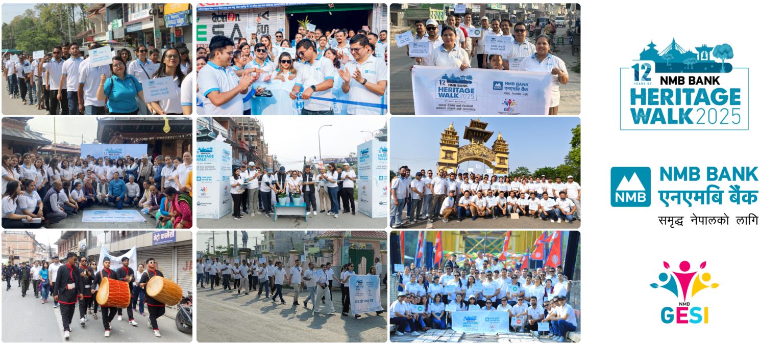 काठमाडौं । एनएमबि बैंकले बाह्रौं हेरिटेज वाक गरेको छ । शनिबार एनएमबि बैंकको गट्ठाघर शाखाबाट सुरु भई शंखधर पार्क, बालकुमारी मन्दिर, पाटी बिहार, नगदेश हुँदै बोडेको महालक्ष्मी मन्दिरसम्म पुगेर हेरिटेज वाक कार्यक्रम सम्पन्न भएको हो ।