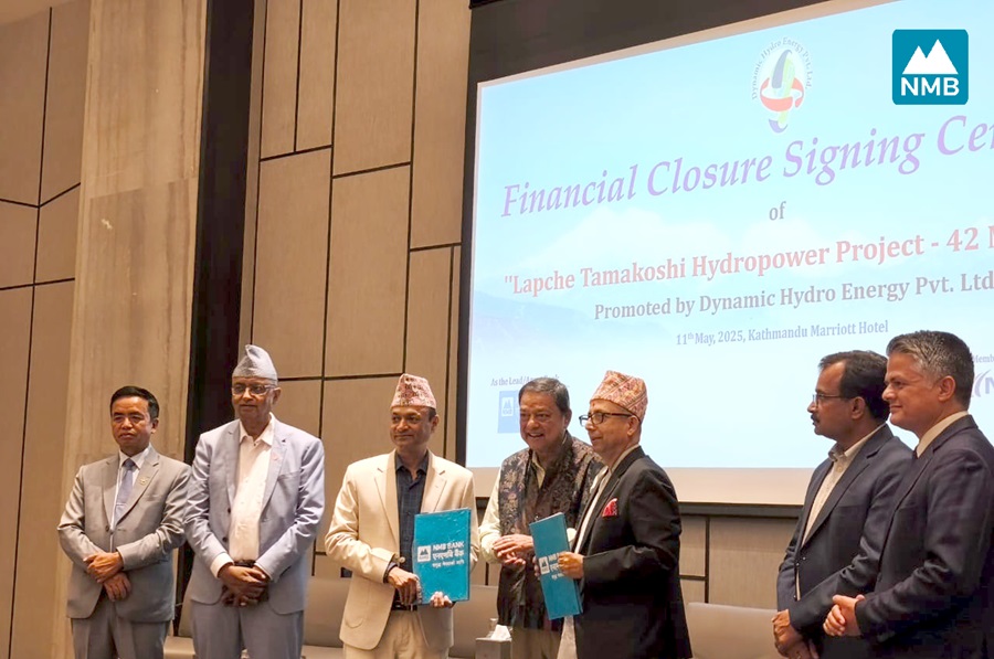 एनएमबि बैंकको तर्फबाट दिनेश दुलाल (चिफ, सस्टेनेबल ईनर्जी बैंकिङ्ग) तथा डायनामिक हाइड्रो ईनर्जी प्रालिको तर्फबाट अध्यक्ष मोहन बिक्रम कार्कीले ऋण सम्झौता पत्रमा हस्ताक्षर गरे ।