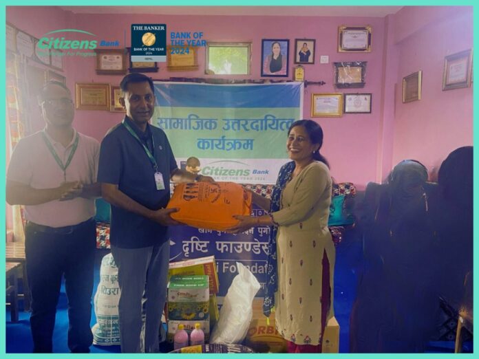 काठमाडौं । सिटिजन्स बैंक इन्टरनेसनलले दृष्टि फाउण्डेसन नेपाललाई सहयोग गरेको छ । बैंकले संस्थागत सामाजिक उत्तरदायित्वअन्तर्गत लामो समयदेखि निरन्तर रुपमा मानसिक स्वास्थ्य समस्याबाट पीडित र परिवारविहीन महिलाहरू र उनका बालबालिकाहरूको लागी काम गर्दै आएको सुदूरपश्चिम प्रदेशको धनगढी अवस्थित दृष्टि फाउण्डेसनलाई सहयोग गरेको हो ।