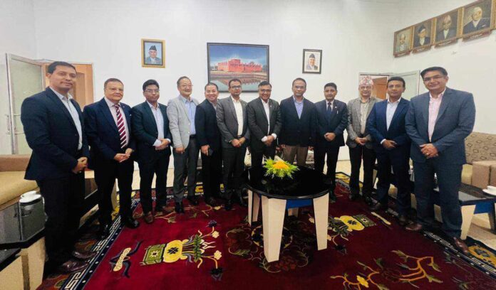 काठमाडौं । नेपाल बैंकर्स सङ्घका पदाधिकारीहरूले नवनियुक्त गभर्नर डा. विश्वनाथ पौडेलसँग भेटवार्ता गरेका छन् । बिहीबार सङ्घका अध्यक्ष सन्तोष कोइराला नेतृत्वको प्रतिनिधिमण्डलले पौडेलसँग भेटवार्ता गरेको हो ।