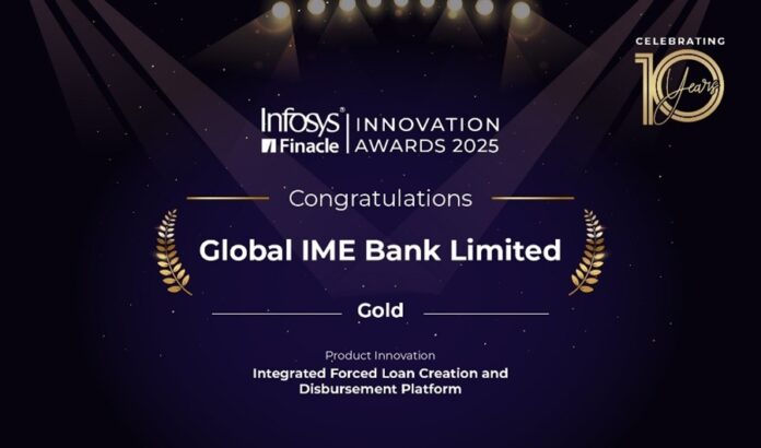 काठमाडौं । ग्लोबल आइएमई बैंक लिमिटेड इन्फोसिस फिनाकल इनोभेसन अवार्ड २०२५ मा प्रोडक्ट इनोभेसन विधा अन्तर्गत गोल्ड अवार्डबाट सम्मानित भएको छ ।