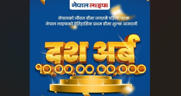काठमाडौं । नेपालको सर्वाधिक विश्वासिलो जीवन बीमा कम्पनी नेपाल लाइफ इन्स्योरेन्स कम्पनीले स्थापनाको २५औँ वर्षमा आइपुग्दै गर्दा दस अर्ब रुपियाँ प्रथम बीमा शुल्क आर्जन गर्दै नेपालको जीवन बीमा उद्योगमा ऐतिहासिक रेकर्ड बनाउन सफल भएको छ ।