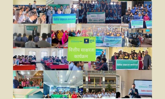 काठमाडौं । सिटिजन्स बैंक इन्टरनेसनल लिमिटेडले आम सर्वसाधारणलाई वित्तीय सचेतना जगाउने उद्धेश्यका साथ चालु आर्थिक बर्ष २०८१, ८२ मा ७ वटै प्रदेशमा रहेका आफ्ना विभिन्न १४८ शाखा कार्यालयहरुबाट वित्तीय साक्षरताका विभिन्न कार्यक्रमहरु संचालन गरेको छ ।