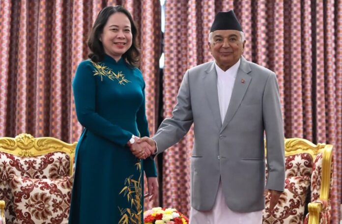 काठमाडौं । राष्ट्रपति रामचन्द्र पौडेल र नेपाल भ्रमणमा रहेकी समाजवादी गणतन्त्र भियतनामका उपराष्ट्रपति भो थि आन सुआनबीच भेटवार्ता भएको छ।