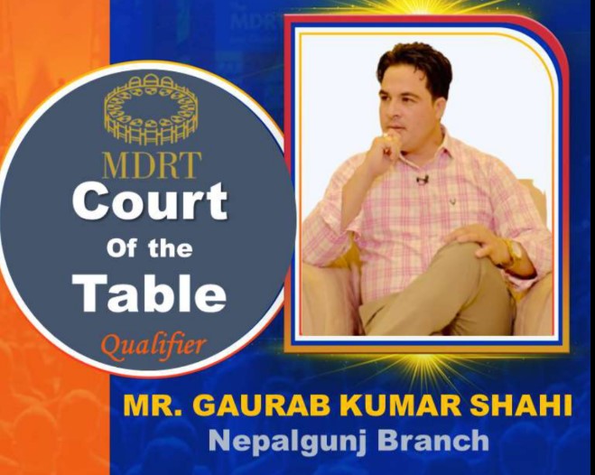 काठमाडौं । सूर्य ज्योति लाइफ इन्स्योरेन्सका गौरव कुमार शाही सन् २०२६ को लागि कोर्ट अफ दि टेबल ‘सिओटी’ बन्न सफल भएका छन् ।सन् २०२६ को लागि कोर्ट अफ दि टेबल बीमा शुल्क आर्जनको लक्ष्य पुरा गर्दै उनी ‘सिओटी’ बन्न सफल भएका हुन् ।