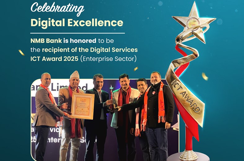 काठमाडौँ । एनएमबि बैंक लिमिटेडले डिजिटल रूपान्तरणमार्फत उत्कृष्ट सेवा प्रवाह गरेबापत डिजिटल सर्भिसेज् आइसीटी अवार्ड २०२५ (ईन्टरप्राईज क्षेत्र) प्राप्त गरेको छ।