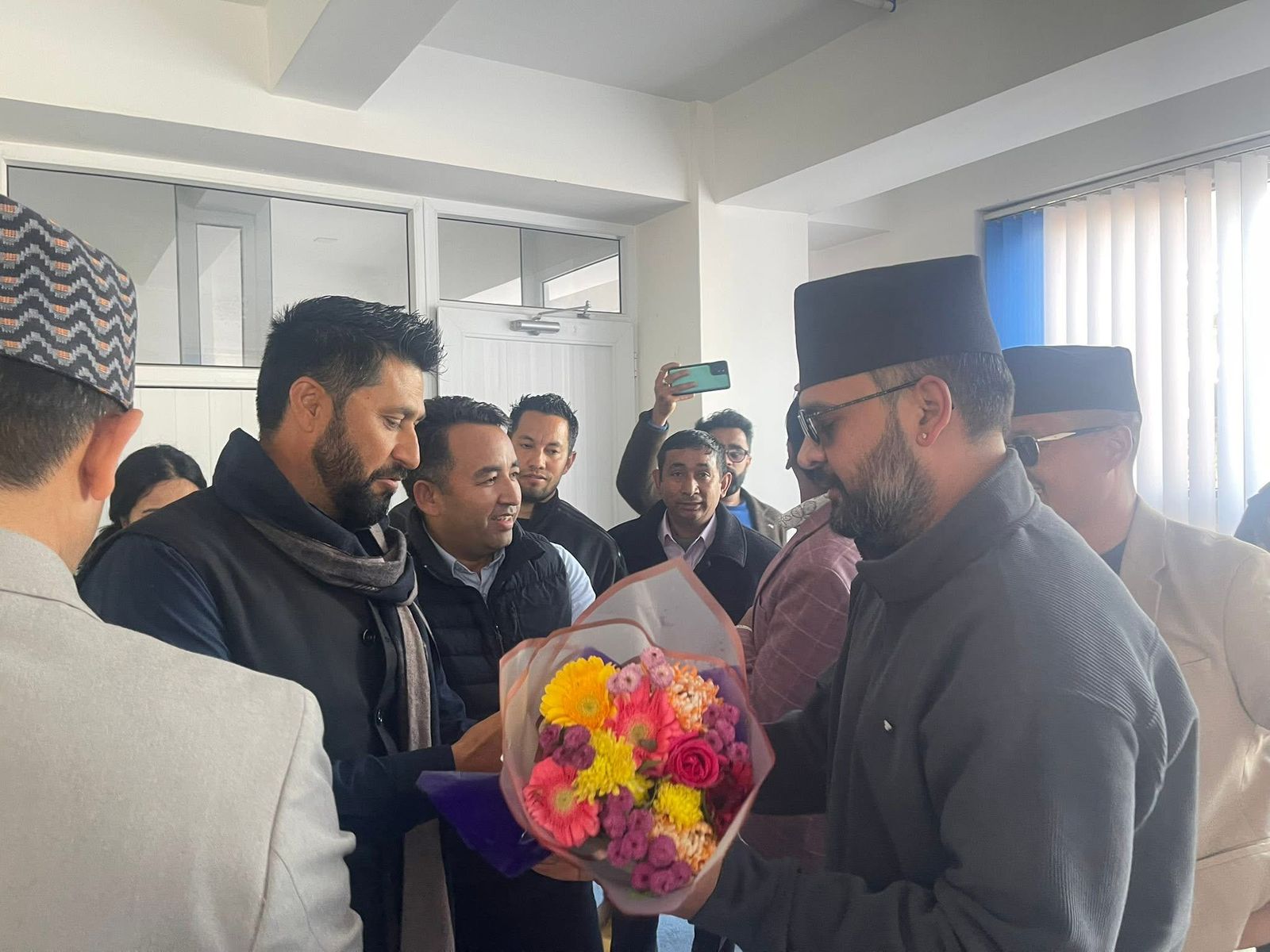 घण्टीघरमा बालेनलाई रास्वपा सभापति रवि लामिछानेले स्वागत गरेका छन् । उनले रास्वपा वरिष्ठ नेताको पदभार ग्रहण गरेका छन् ।