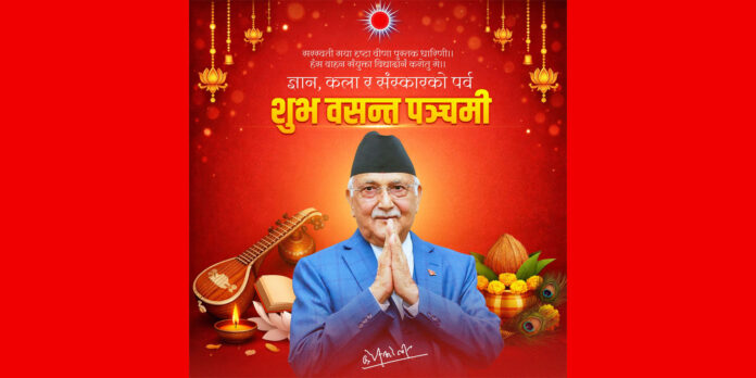 आज वसन्त पञ्चमी, सरस्वती पूजा अर्थात् प्रकाशको पर्व रहेको उल्लेख गर्दै अध्यक्ष ओलीले वसन्तको आगमनसँगै ज्ञान, कला र संगीतकी देवी सरस्वतीको पूजा गरिने परम्परालाई नेपाली समाजको सांस्कृतिक पहिचानसँग जोडेका छन् । उनका अनुसार आजकै दिन बालबालिकालाई अक्षरारम्भ गराइने परम्पराले ज्ञानप्रति सम्मान र भविष्यप्रति आशाको सन्देश दिन्छ ।