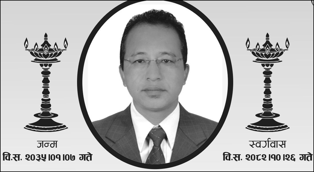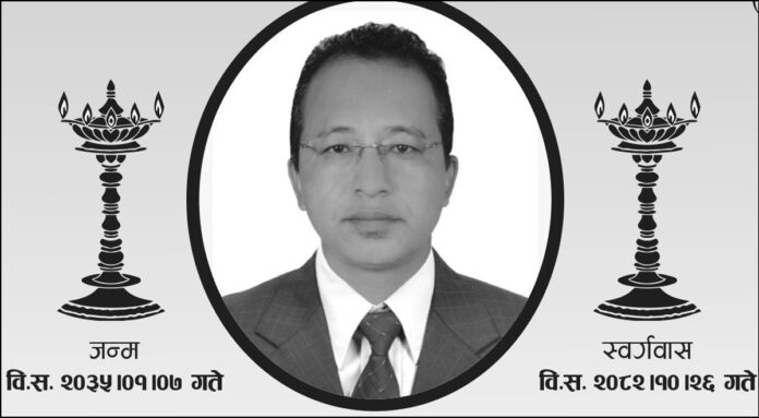 काठमाडौं । नेशनल लाइफ इन्स्योरेन्स कम्पनी लिमिटेडको कीर्तिपुर शाखाका ब्रान्च म्यानेजर शिव शरण महर्जनको निधन भएको छ । कम्पनीमा लामो समयदेखि आवद्ध भएर काम गरीरहेका महर्जनको सोमबार (माघ २६ गते) निधन भएको हो ।