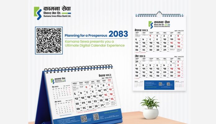 काठमाडौं । कामना सेवा विकास बैंकले वि.संं २०८३ को वार्षिक क्यालेन्डर सार्वजनिक गरेको छ । बैंकले आधुनिक प्रविधिलाई मध्यनजर राख्दै उक्त क्यालेन्डरलाई डिजिटल माध्यमबाट उपलब्ध गराएको जनाएको छ ।