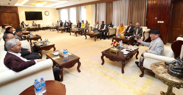 काठमाण्डौ । राष्ट्रिय सभा निर्वाचनमा सिट बाँडफाँटका विषयमा छलफल गर्न सत्ता गठबन्धनको बैठक बस्दैछ । गठबन्धनको बैठक आज बिहान ९ बजे प्रधानमन्त्रीको सरकारी निवास बालुवाटारमा बस्नेछ ।