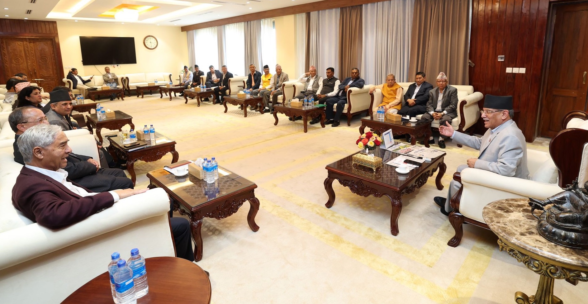 गठबन्धनको बैठक हिजो बुधबार पनि बसेको थियो । बुधबारको बैठकमा प्रधानमन्त्री पुष्पकमल दाहाल प्रचण्डले एमाले अध्यक्ष केपी शर्मा ओलीले राष्ट्रियसभामा मिलेर जान प्रस्ताव गरेको ब्रिफिङ गरेका थिए ।