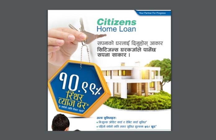 बैंकले १०.९९ प्रतिशत स्थिर ब्याददरमा ‘सिटिजन्स होम लोन’ योजना ल्याएको हो ।