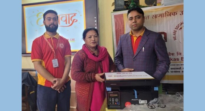 यसैक्रममा बैंकको न्यूरोड शाखाद्वारा हिमालय माध्यमिक विद्यालय, न्यूरोडलाई एक थान प्रिन्टर प्रदान गरिएको छ । विद्यालयको प्रशासनिक तथा दैनिक कार्यमा सहयोग पुर्याउने हेतुले उक्त प्रिन्टर प्रदान गरिएको हो । न्यूरोड शाखाका प्रमुख कुमार अधिकारीले विद्यालयका प्रधानाध्यापक हिरा मर्हजनलाई प्रिन्टर हस्तान्तरण गरेका थिए ।