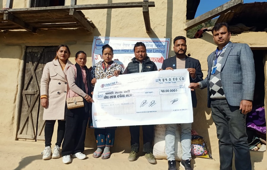 कम्पनीको सुर्खेत शाखामा बीमा गरेका सल्यान जिल्ला कालिमाटी गाउँपालिका वडा नंं ५ निवासी रामबहादुर घर्तीको मलेसियामा मंसिर २२ गते मृत्यु भएको थियो ।