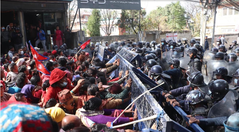 नेपाल राष्ट्र बैंकको केन्द्रीय कार्यालय घेराउ गर्न गएका पीडितहरूलाई प्रहरीले रोक्न खोज्दा झडप भएको हो ।