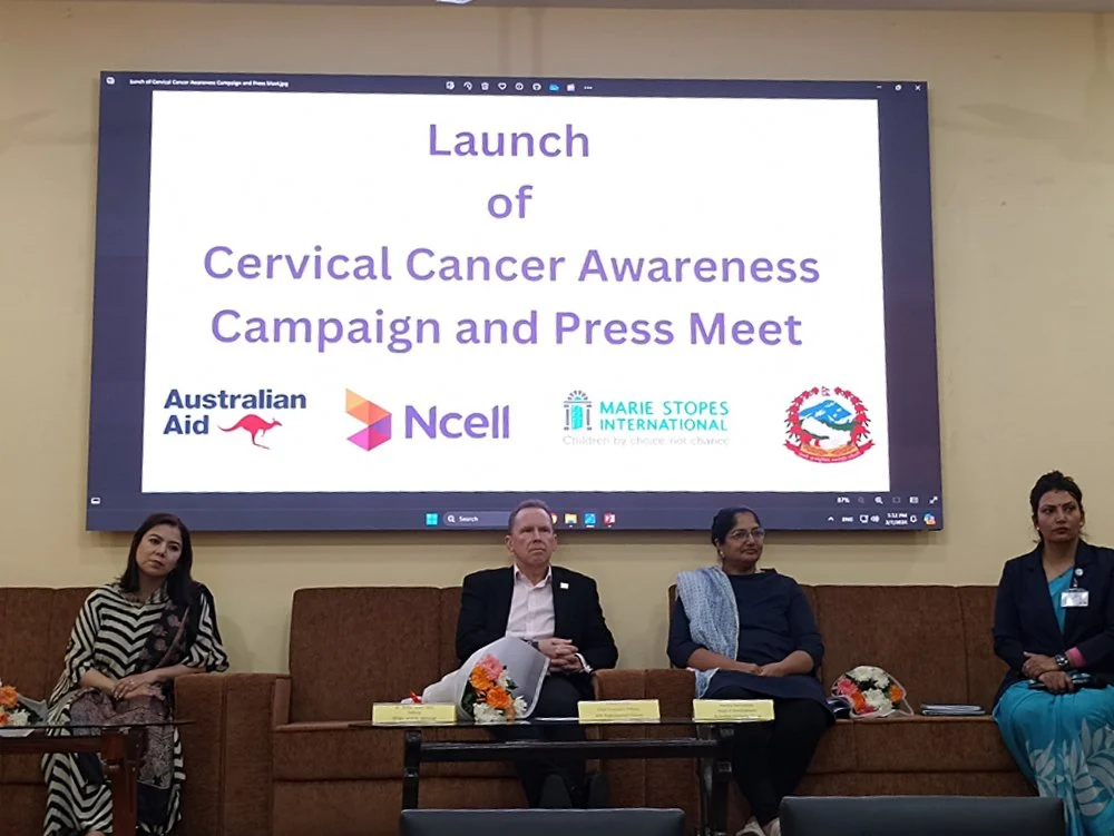 काठमाडौँ । पाठेघरको मुखको क्यान्सरको राष्ट्रव्यापी सचेतना अभियान सुरु भएको छ । एनसेल, मेरी स्टोप्स इन्टरनेशनल नेपाल र अस्ट्रेलिया सरकारको विदेश मामिला तथा व्यापार विभागको संयुक्त सहकार्यमा पाठेघरको मुखको क्यान्सरको परीक्षण र रोकथामका लागि राष्ट्रव्यापी सचेतना अभियान सुरु भएको हो ।