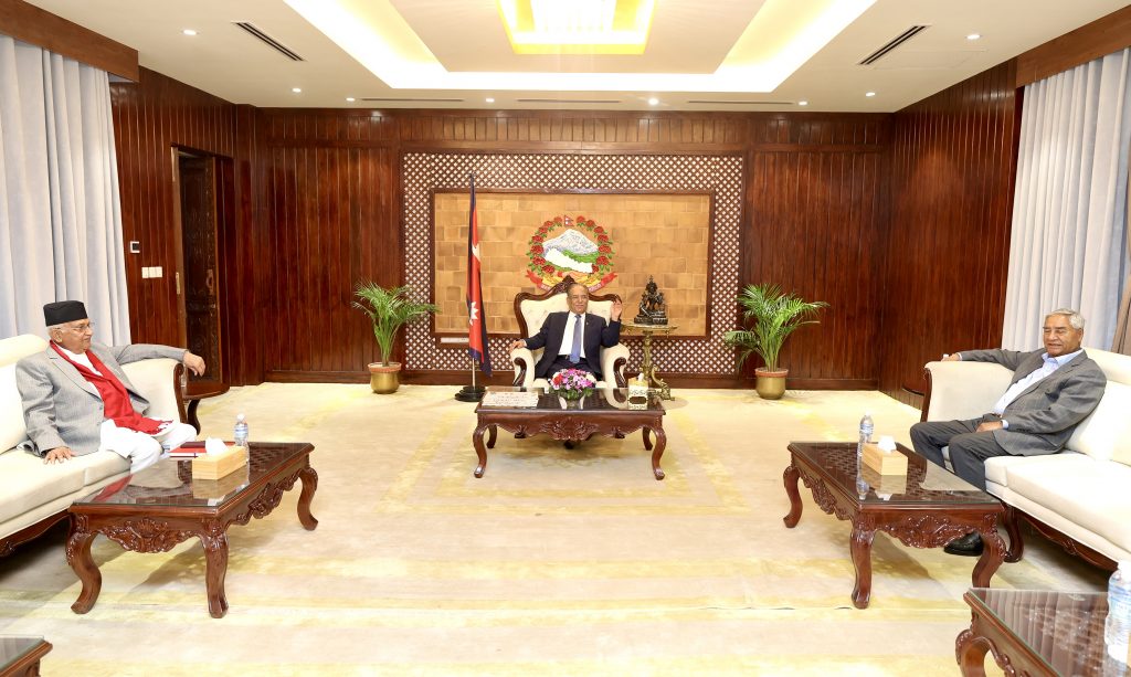 प्रधानमन्त्री दाहालले शनिबार विपक्षी दलका नेता देउवासँग छलफल गरेका थिए । छलफलमा सत्ता साझेदार दल नेकपा एमालेका अध्यक्ष केपी शर्मा ओलीसमेत सहभागी थिए ।