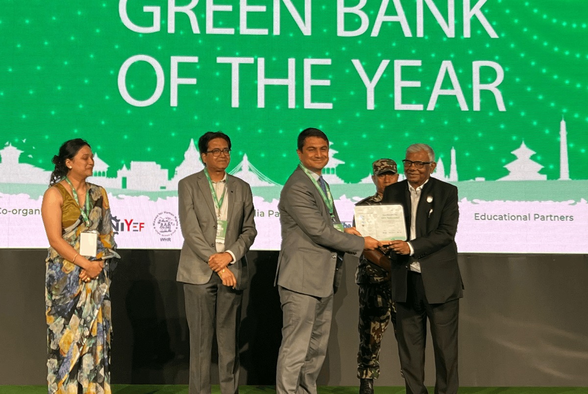 काडमाडौं । एनएमबी बैंक “ग्रीन बैंक अफ द इयर २०२४” अवार्डबाट सम्मानित भएको छ । यो पुरस्कार विश्व वातावरण दिवसको अवसरमा फोहोर व्यवस्थापन र जलवायु सम्मेलन,मा प्रदान गरिएको हो ।