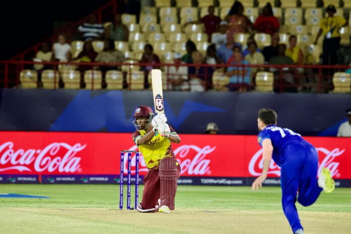 पहिले ब्याटिङ गरेको वेस्ट इन्डिजका लागि अनुभवी ब्याट्सम्यान निकोलस पुरनले ९८ रनको योगदान गरे । आक्रामक रूपमा प्रस्तुत भएका उनले केवल ५३ बलको सामना गरी आठ छक्का र ६ चौका पनि प्रहार गरेका थिए ।