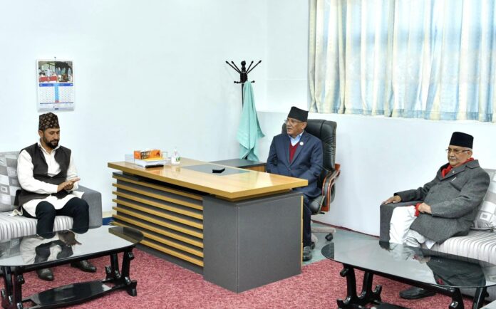 काठमाडौं । प्रधानमन्त्री पुष्पकमल दाहाल प्रचण्ड, नेकपा (एमाले) का अध्यक्ष केपी शर्मा ओली र गृहमन्त्री रवि लामिछानेबीच छलफल भईरहेको छ ।